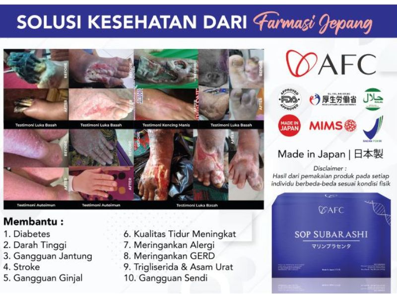 Kami adalah mobile stokis resmi AFC Cimahi yang melayani pemesanan produk AFC yaitu SOP Subarashi Gold, Utsukushhii Gold dan Hikari yang asli.