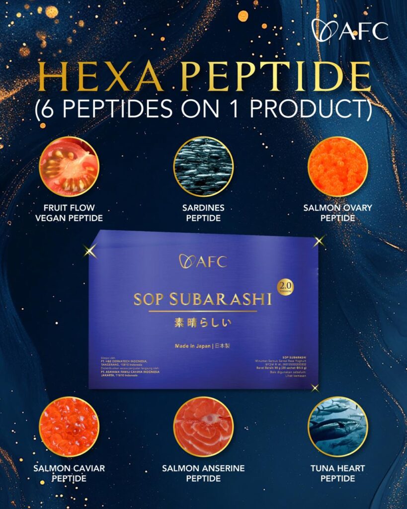 SOP Subarashi Gold merupakan produk hexa peptide di Jepang yang memiliki bahan utama yaitu Marine Placenta ikan Onchorhynchus Keta Salmon di Hokkaido, Sardine Peptide, Fruitflow (vegan peptide), Salmon Anserine Peptide, Salmon Caviar Peptide dan Tuna Heart Peptide.